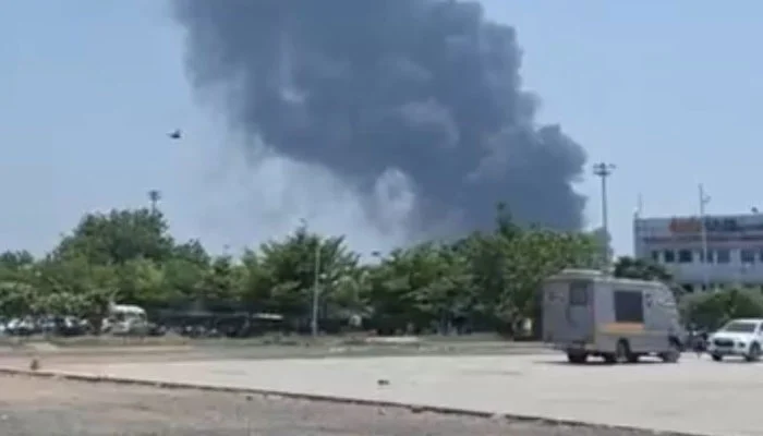 The aircraft went down in a civilian area close to the airport perimeter. Authorities have not yet confirmed the number of casualties or injuries, though emergency services were seen rushing to the crash site.