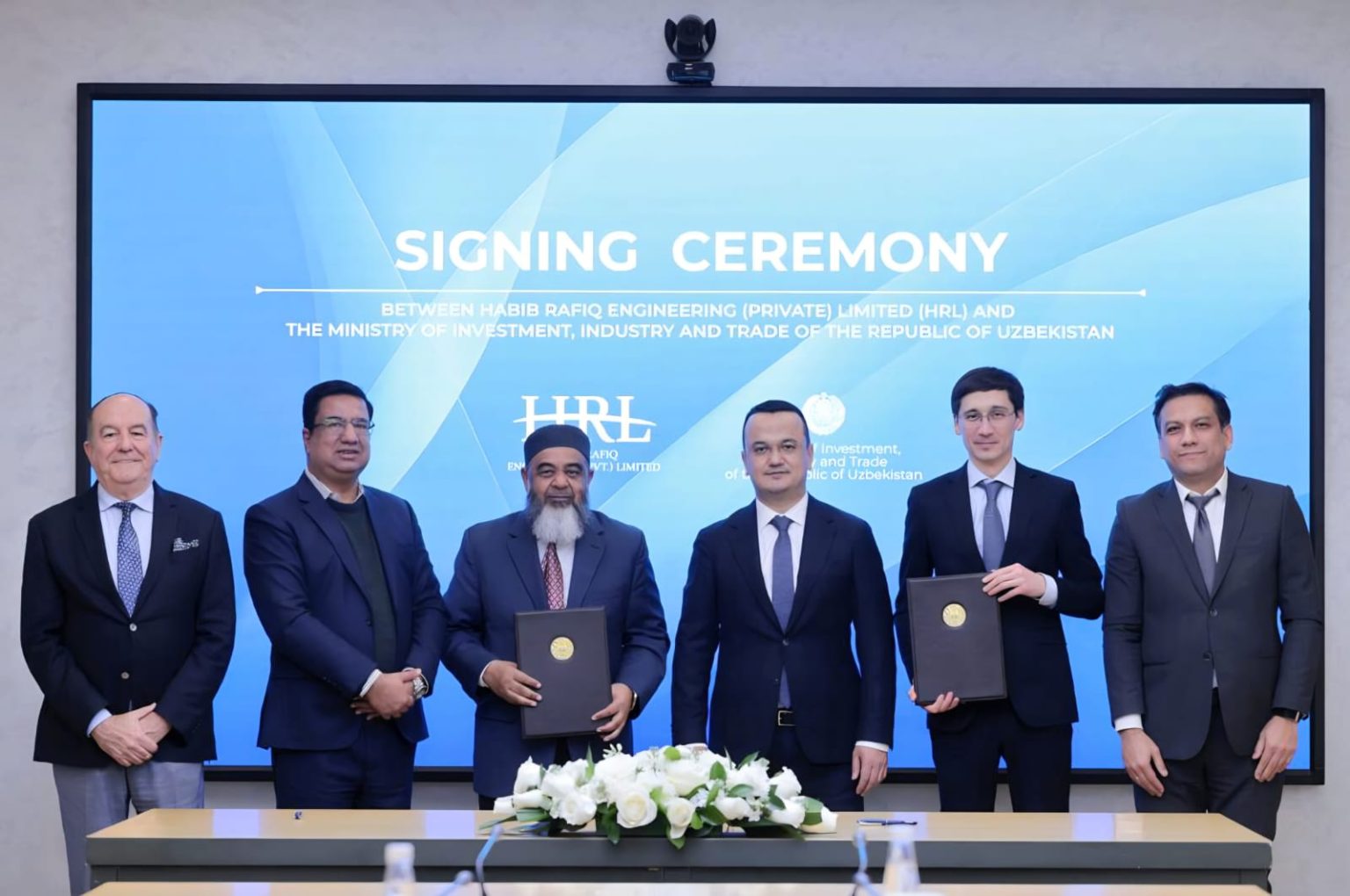 The MoU was formalized at the Ministry in Tashkent in the presence of Uzbekistan’s Minister of Investment, Industry and Trade, Laziz Sh. Kudratov, Deputy Minister Shokhrukh Kh. Gulamov, HRL Chief Operating Officer Muhammad Aslam Malik, and senior officials from both sides.